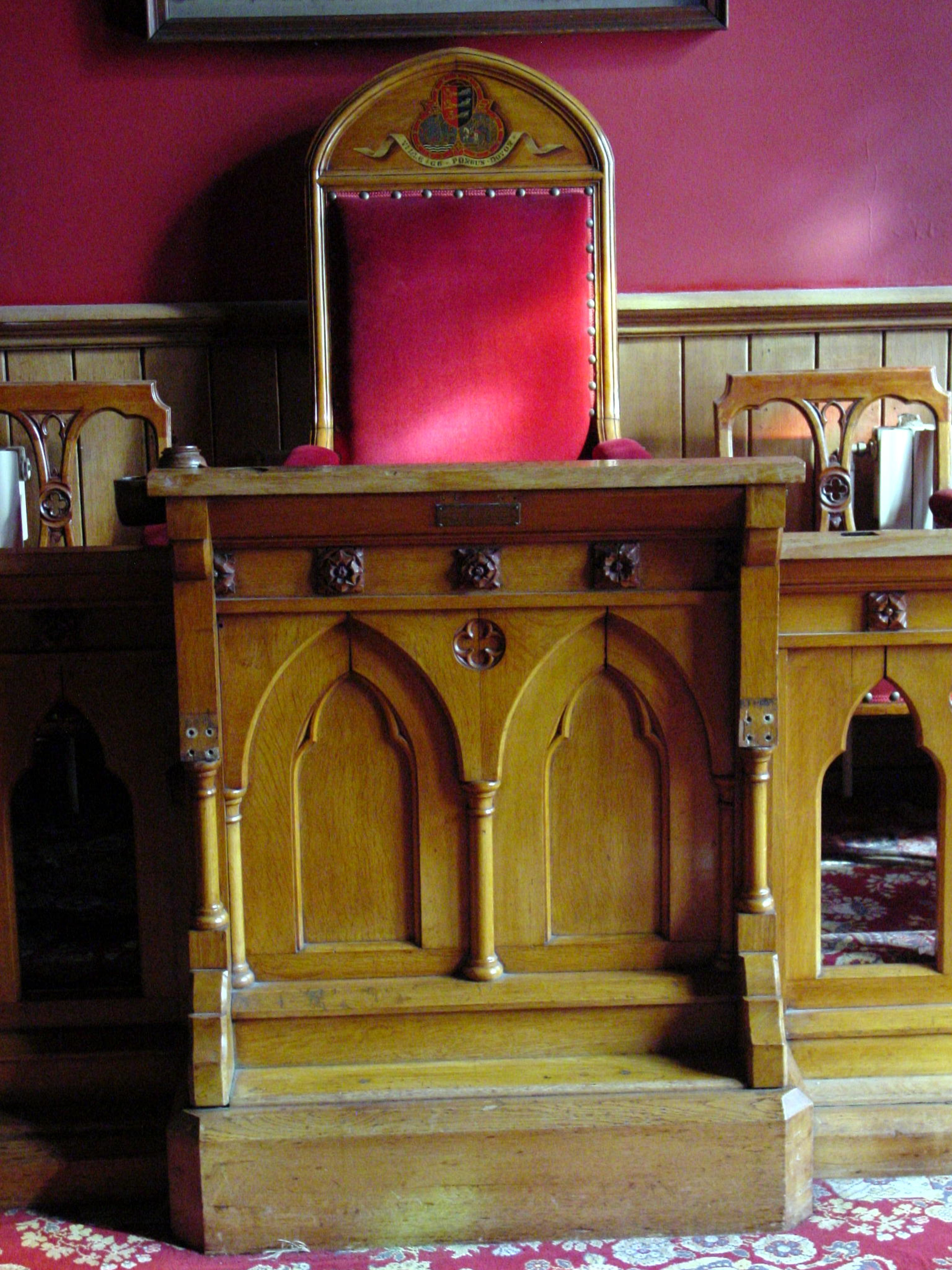 The presiding chair and in front, the Flashman lectern in the former Council Chamber where Inspector North would have sat. AS
