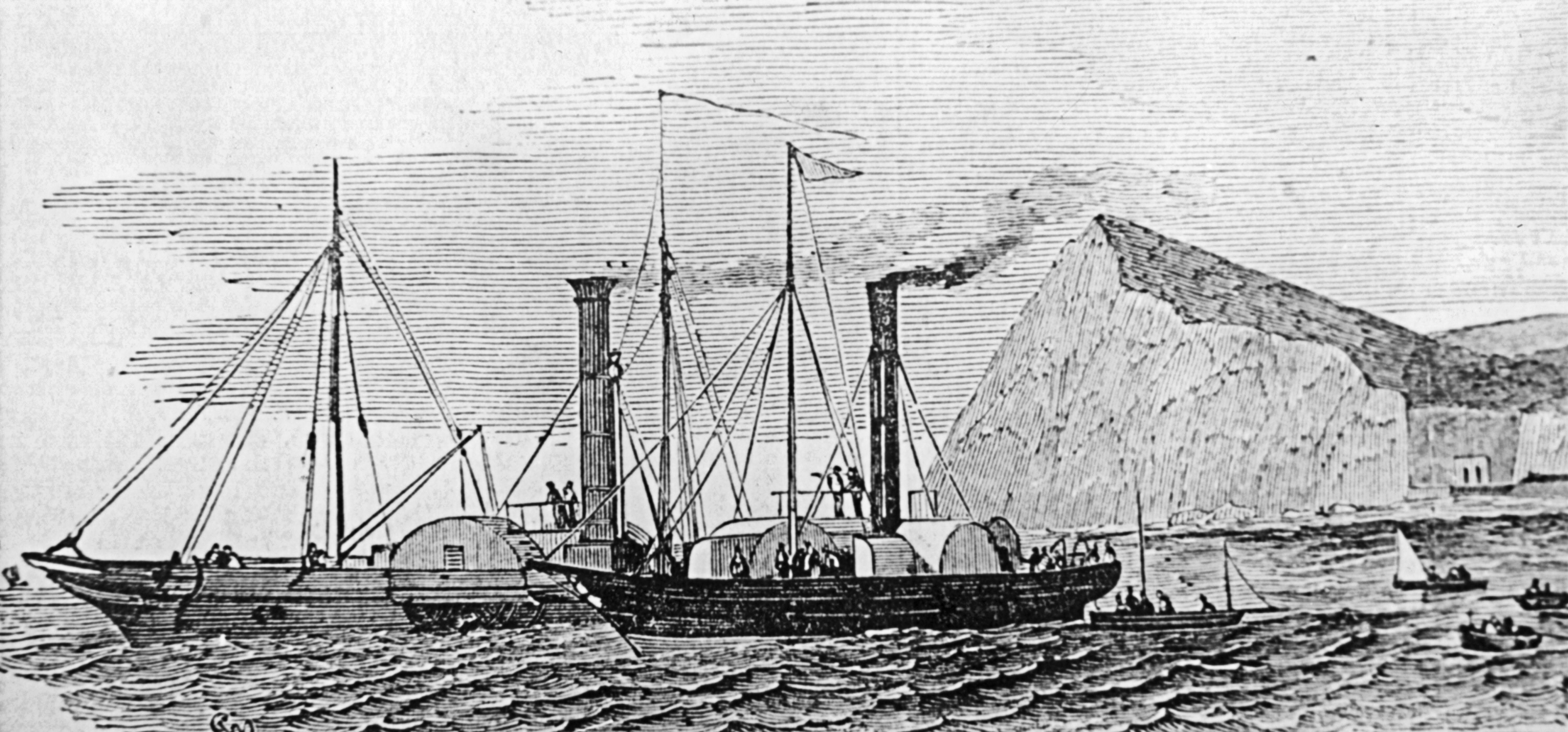 On Wednesday 28 August 1850 the first telegraphed message, in legible roman lettering, was sent by John Watkins Brett (1805–1863) using Wheatstone’s printing machine, across the Channel from Calais to Dover. The transmission was carried on the first cross Channel submarine telegraph and telephone cable and the epoch-making experiment cost approximately £2,000. By September 1851 a cable for commercial use, laid between the South Foreland at St Margaret’s Bay – east of Dover – and Cap Gris Nez, France, came into use.