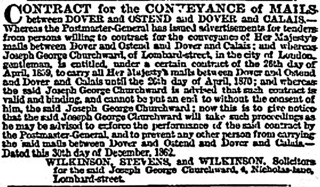 In August 1872, a DHB Board meeting, presided over by the then Deputy Chairman Steriker Finnis (1817-1889), was held. The members of the Board included, Samuel M Latham and John Birmingham representing Dover Corporation and James Staat Forbes and C W Eberall of the South Eastern Railway (SER) and the London Chatham and Dover Railway (LCDR) respectively. There was unanimous agreement to adopt a scheme to create a commercial harbour designed by Sir John Hawkshaw (1811-1891) that utilised the existing Admiralty Pier and enclosed 340 acres of sea space. The sea space was to be ‘deepened so as to admit steamers of draught of not less than the Holyhead class.’ Other improvements were to include a covered walkway from both the SER Town Station and the LCDR Harbour Stations. Each of the stations was to have a landing wharf, so that, ‘passengers could embark and disembark in comfort, whatever the condition of the weather.’